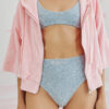 Виготовлені з 100% бавовни труси мають текстуру, подібну до рушника, що забезпечує відмінну м’якість і високу вбираючість. Вони створені в комплекті з Махровий топ для того, щоб забезпечувати максимальний комфорт вдома, але їх функціональність виходить далеко за межі домашнього використання. Можуть доповнювати посвякденні образи, а також слугувати як купальник, що робить їх ідеальним варіантом для пляжних поїздок. Виріб прикрашає контрастна вишивка у вигляді мушлі.