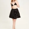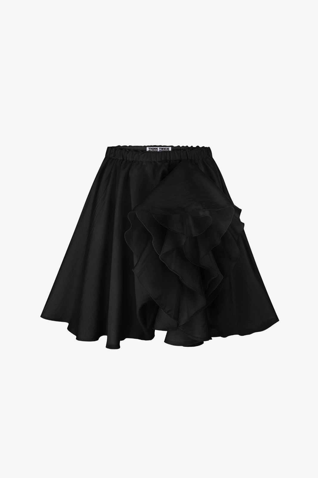 Тенселова тканина забезпечує спідниці повітряність, що створює комфорт і свободу рухів. Трьохшаровий крій формує об’єм, що нагадує квітку півонію, додаючи спідниці вишуканості. Зафіксований волан спереду дозволяє легким рухом оголити ніжку, підкреслюючи її форму і надаючи образу ніжності і романтичності.